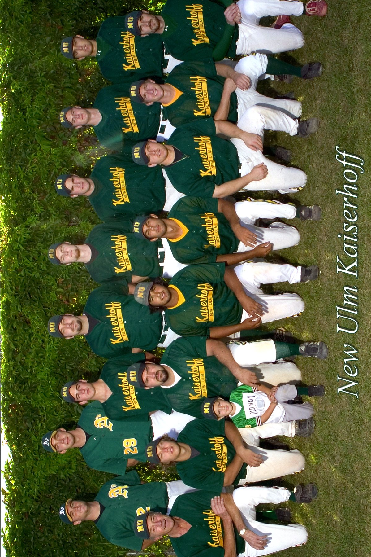 Image # 4888 - 2005 Kaiserhoff team MN state tournament team photograph 2005 Kaiserhoff team participating in Minnesota state amateur tournament under manager Dick Wellmann. Left to right, front: manager Dick Wellmann, Eric Austvold, Brady Ranweiler, Blake Thorson, Dusty Wilfahrt, Ryan Ellwein, Keith McClellan, Ryan Wellmann. Bat boy is Hunter Ranweiler. Second row: Derk Rignell (Marshal... (Click on the image for a full description) |