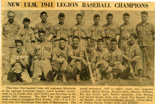 Image # 1575 - 1941 New Ulm American Legion No. 1 Team Photo 1941 team information photo for no. 1 American Legion team in clipping format. Identification included |