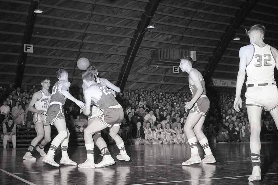 Image # 2048 - 0 Undated basketball action at Gustavus Adolphus. Brownton basedkt Stray negative from basketball photos that is unidentified by date and event but appears to be held at Gustavus Adolphus and likely is from the Brownton appearance. Details should be added.If Brownton, negatives of event follow as objects 2042 to 2048 from this negative original New Ulm Journal file. Others may also ... (Click on the image for a full description) |