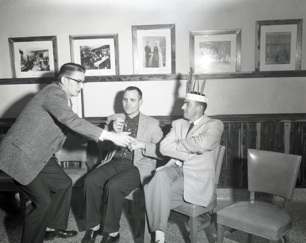 Image # 325 - New Ulm Club Election New Ulm Club's annual election 1957. Harold Fenske, Vern Zahn (seated, left) Don Gollnast (seated right) |