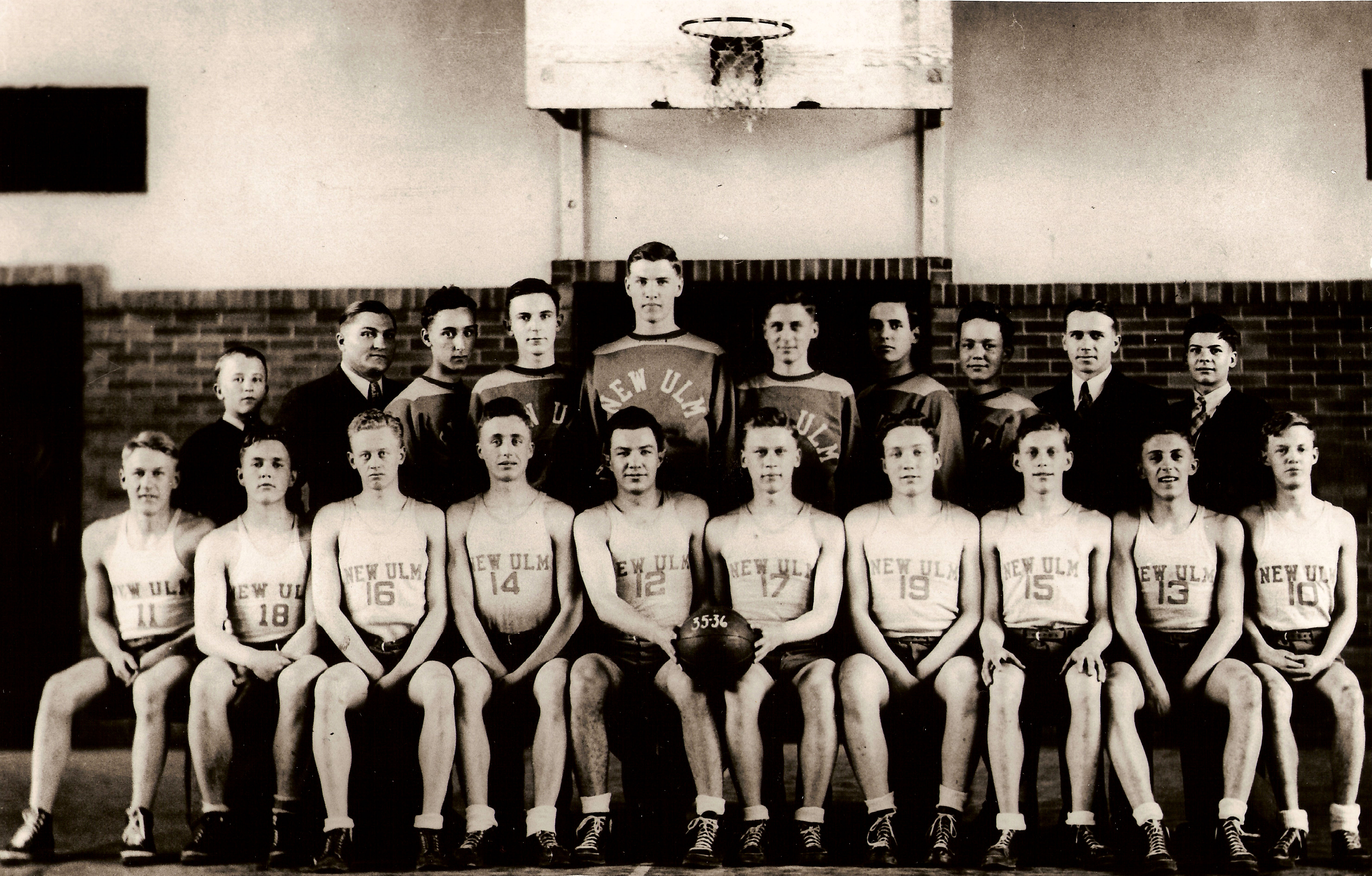 Image # 2336 - 1939 New Ulm Brewer baseball team as one of a collection of New Ulm sports team pictures and individuals on CD created by Jim Aufderheide for NUSC. 1939 New Ulm Brewers baseball team. Archived as object # 2329 in the CD/DVD collection (NUSC file number 2). Bat boys in front are Lawrence Bastian and Ronald Glaser. Players, L-R, Row 1: Andy Bastian, Melvin Schiller, Stan Manderfeld, Robert Aufderheide, Willard Wieland, Ted Manderfeld Jr., Carl Lindmeyer, Leon O... (Click on the image for a full description) |