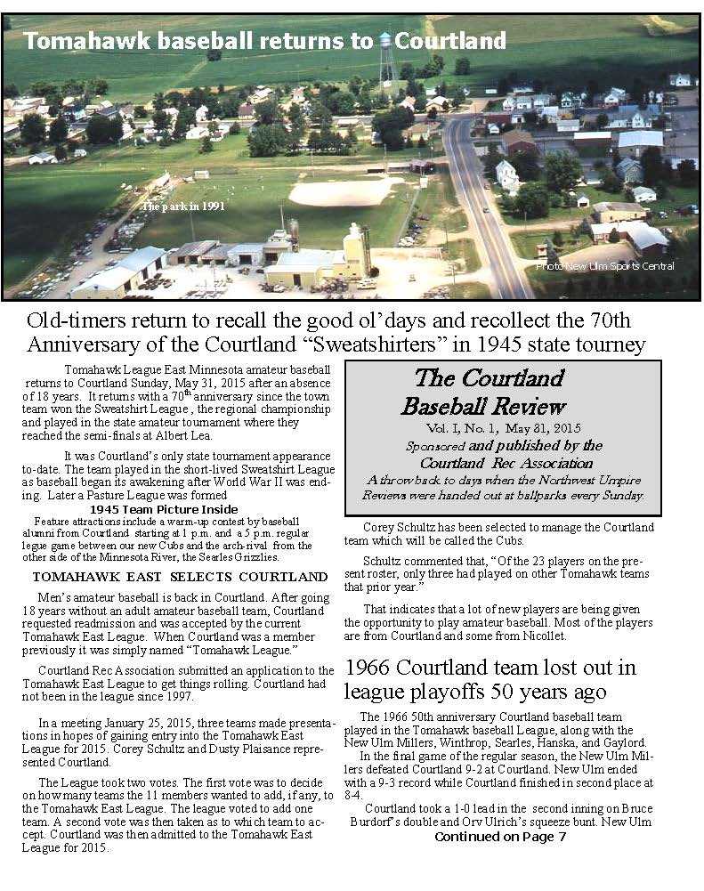 Pairings and schedules for the Region 2C tournament have been announced. All entries are from the Tomahawk East League with best three teams to move on to the Minnesota amateur tournament.