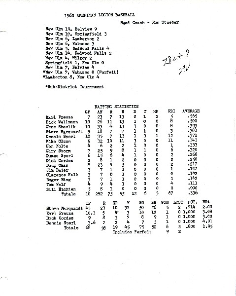 Image # 1433 - 1960 New Ulm American Legion Baseball Season Summary and Individual Statistics 1960 Season Summary and Individual Batting Statistics for the New Ulm American Legion Baseball Team. |