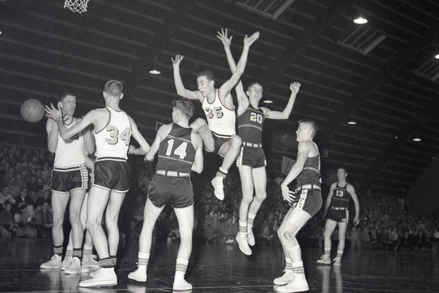 Image # 2001 - 1958 Brownton High School In Region III basketball tournament vs Walnut Grove Many good 120mm negatives of Brownton high school basketball team in finals of Region III vs Walnut Grove. Additional photos from this event are included as additional object numbers 1. One negative selected for scan for this object num ber. 2. OF REMAINING NEGATIVES, SELECT AS MANY AS DESIRED AND A... (Click on the image for a full description) |