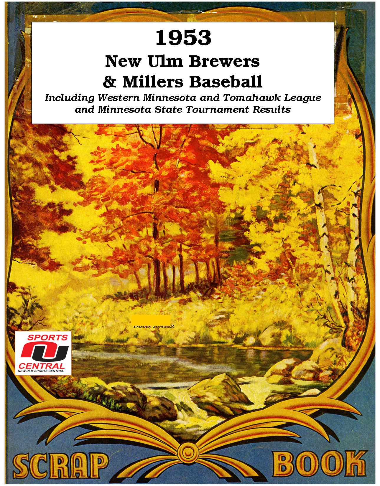 Image # 2774 - 1953 New Ulm Baseball Association amateur Scrap Book by Herb McIvors Original scrapbooks of New Ulm Baseball Association for year indicated. Includes game by game clippings and box scores for New Ulm Brewers and Millers plus annual statistics and financial information. Includes full season of game results and box scores for Western Minnesota and Tomahawk amateur baseball leagu... (Click on the image for a full description) |