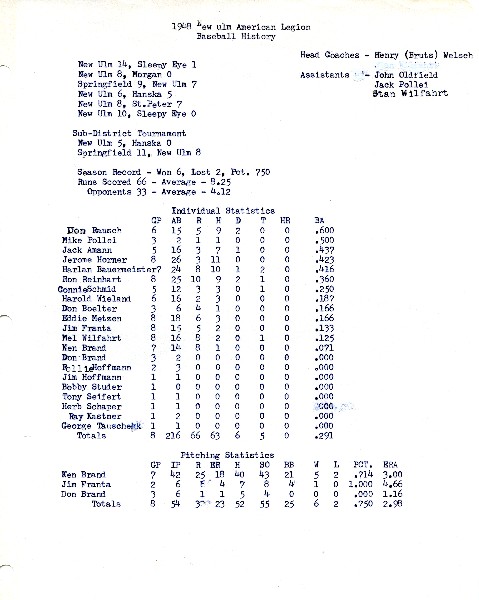 Image # 1421 - 1948 New Ulm American Legion Baseball Season Summary and Individual Statistics 1948 Season Summary and Individual Batting Statistics for the New Ulm American Legion Baseball Team. |