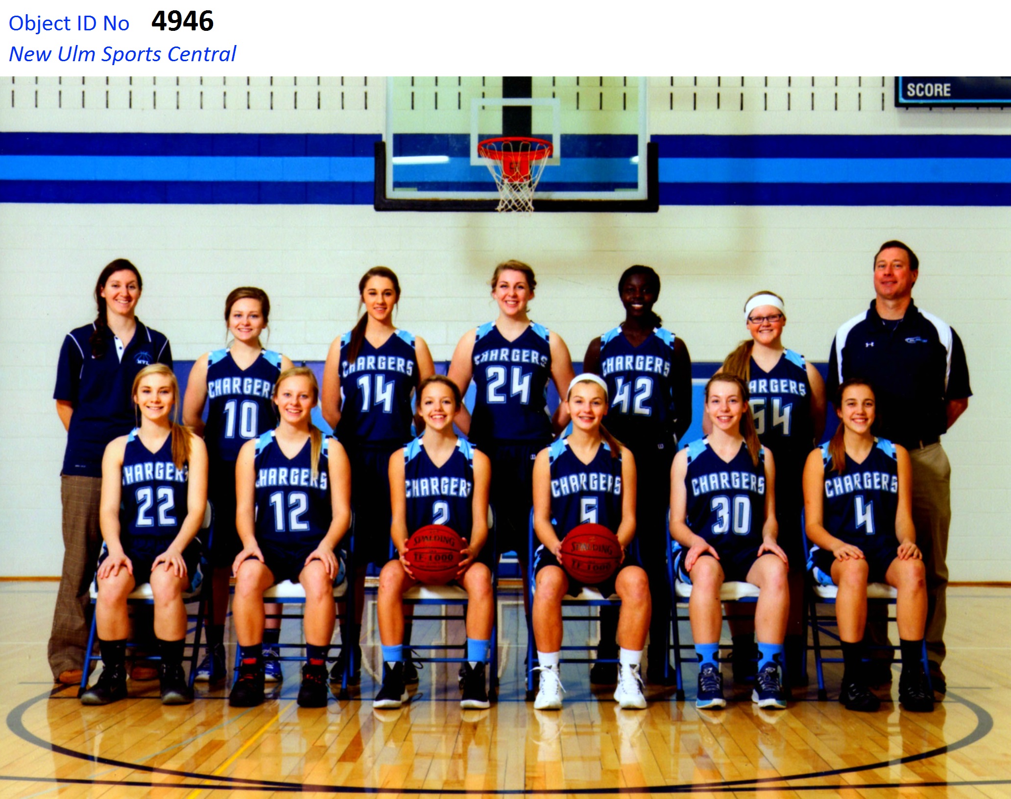 Image # 4946 - 2015-16 Minnesota Valley Lutheran GBB varsity picture Girls' varsity basketball photograph from year indicated as furnished by school. Print is from original school related photograph. Photograph originally preserved by New Ulm Sports Central's website as JPG scan and also on the site's CRT, Inc. computer object identification folder for objects OIT #4501-5,000. I... (Click on the image for a full description) |