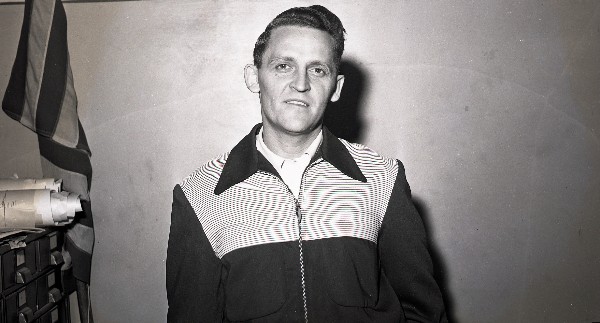 Image # 1704 - 1954 Mickey Mueller New Ulm bowlng portrait Two 4x5 negatives in portrait pose, likely used in bowling annual for 1954. |