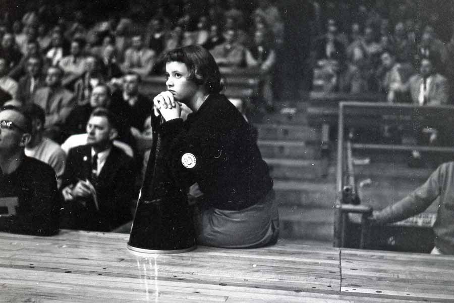 Image # 2002 - 1958 Brownton High School Minnesota State basketball tournament 120mm negatives of Brownton high school basketball team in state basketball tournament. Includes action negatives and cheerleaders on floor. Additional photos of this event are object numbers 2050 |