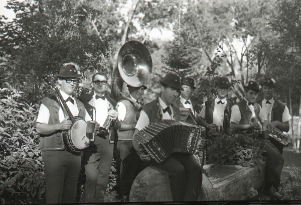 Image # 1669 - 1968 Jolly Germans dance band of New Ulm, Minnesota Don Morris had polka dance band operating in 1960's. Named as Jolly Germans. Pictures taken to appear in Polka Day booklet for New Ulm Chamber in 1968. 35mm negatives. No identification available for band members. |