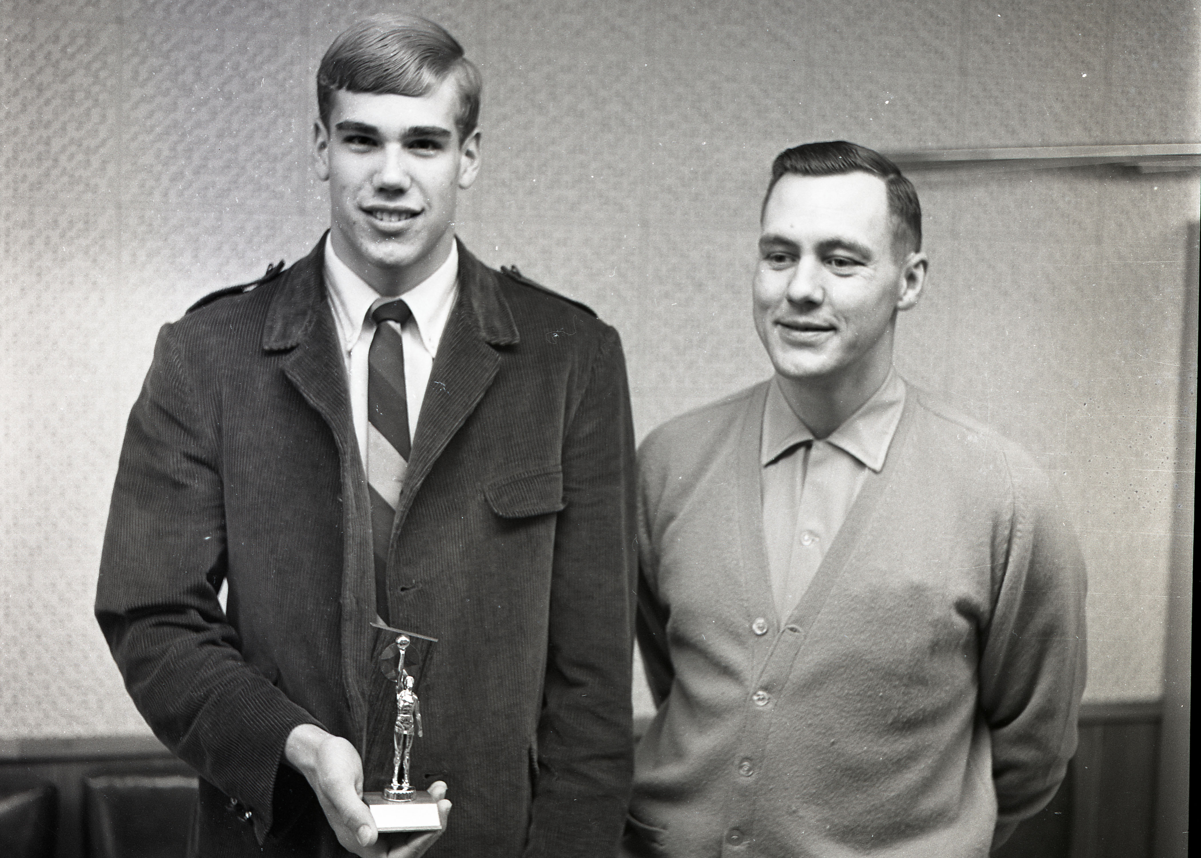 Image # 2381 - 1956 Marti's Bar City League bowling team Marti's Bar team which finished in sixth place in City League at Concordia Lanes in 1956 bowling. Individual pictures were made from the team photographs taken that year to compile the bowling annal. L-R: Lee Gaut, Harold Forster, Dr. Joe Burnett, captain Leon Reinhart and George Schlieman. This 5x7 print was pu... (Click on the image for a full description) |