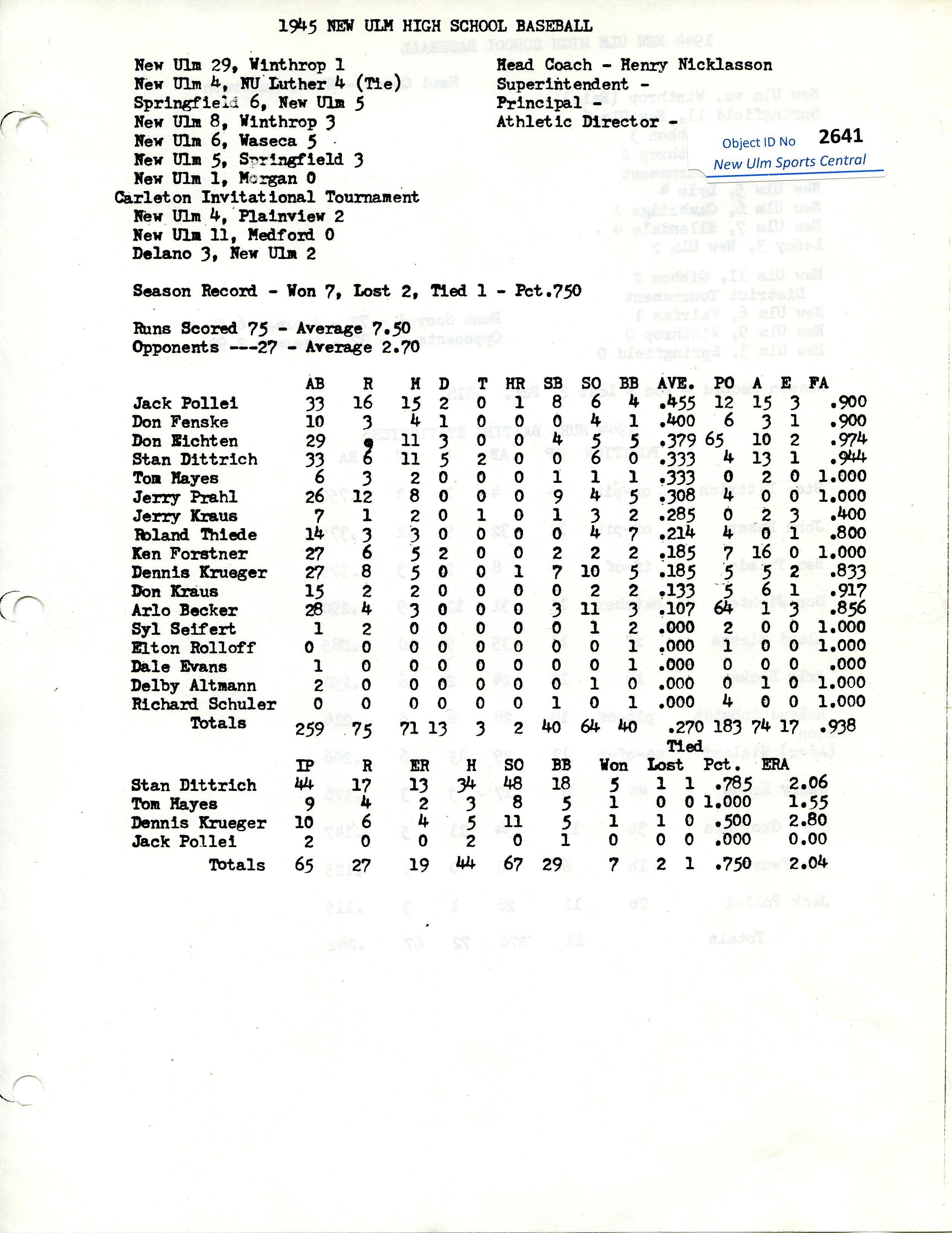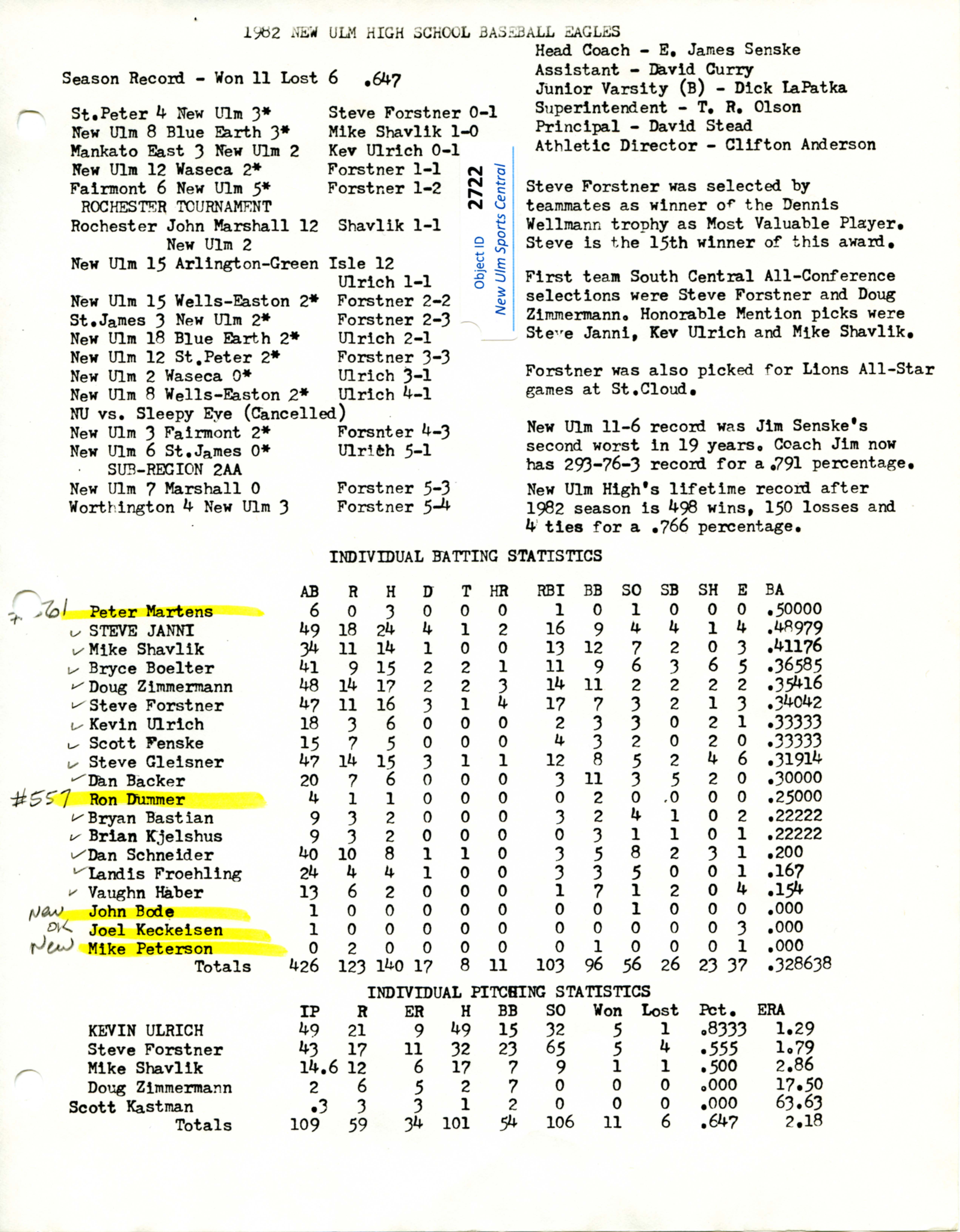 A 9-2 win Tuesday night moved New Ulm into a first division tie for fifth place in Tomahawk East League standings. Courtland lost is 13th game as a result.