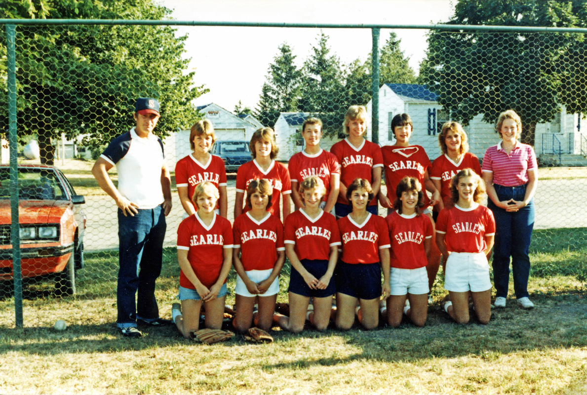 Image # 3645 - Searles girls's softball team used for home show picture display Unidentified Searles girl's softball team picture used in home show promotion by New Ulm Sports Central. Team probably played in Bi-County League |