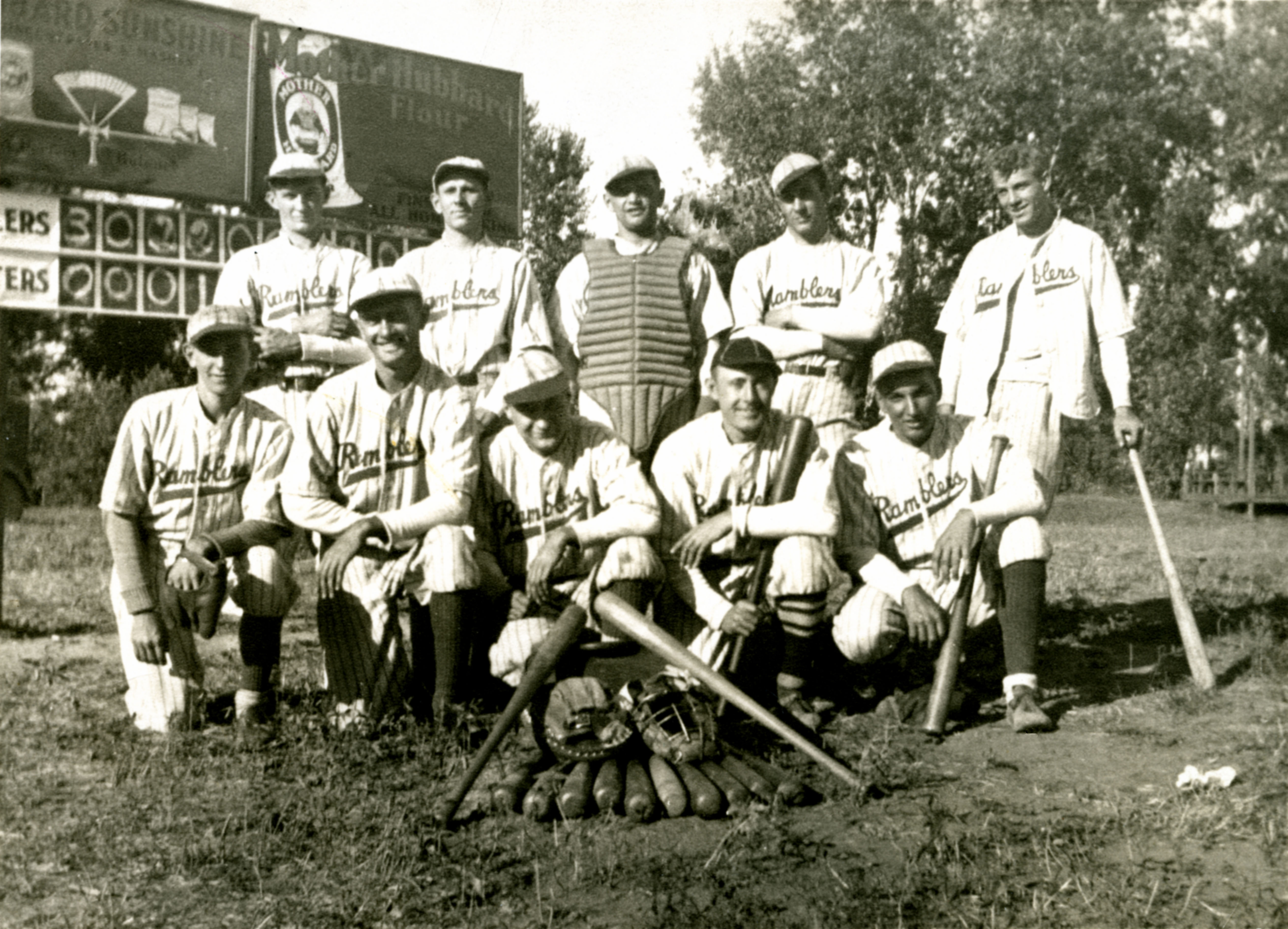 Image # 3591 - Rambler Baseball team from the 1930's,team from Aufderheide collection New Ulm Ramblers who played on south end of New Ulm in the 1930's. See Object ID # 3585 for thumbnail. Identification from back of picture is on object 3592. Refer to index for identification. |