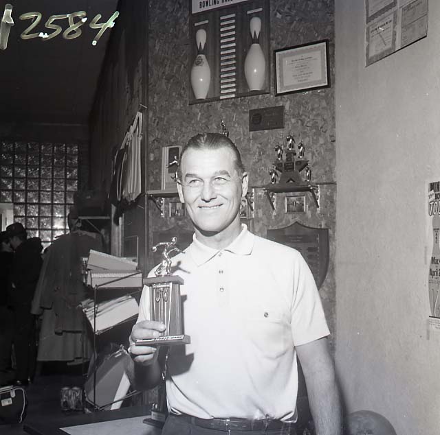 Image # 2584 - 1967 Men's Bowling Tournament Champion Negatives of 1967 bowling tournament champions including Henry Nicklasson for high game and Carl Paa and Gardell Kuelbs for apparent doubles winners. Negatives of Don Veigel and Virgil Schnorich, other winners, were included in description of NUJ negative file but were not included when object entry was completed. ... (Click on the image for a full description) |
