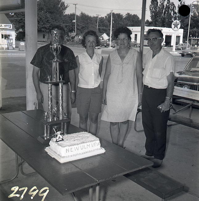 Image # 2799 - 1967 New Ulm VFW State champion celebration negatives with trophies One of numerous 120mm negatives of state champion VFW baseball team including trophy, fans, celebration pictures. See 8-21-1967 New Ulm Journal for entire tournament information and details and provide microfilm copies to New Ulm Sports Central for addition to archives. Photo shows team celebrating championship. ... (Click on the image for a full description) |